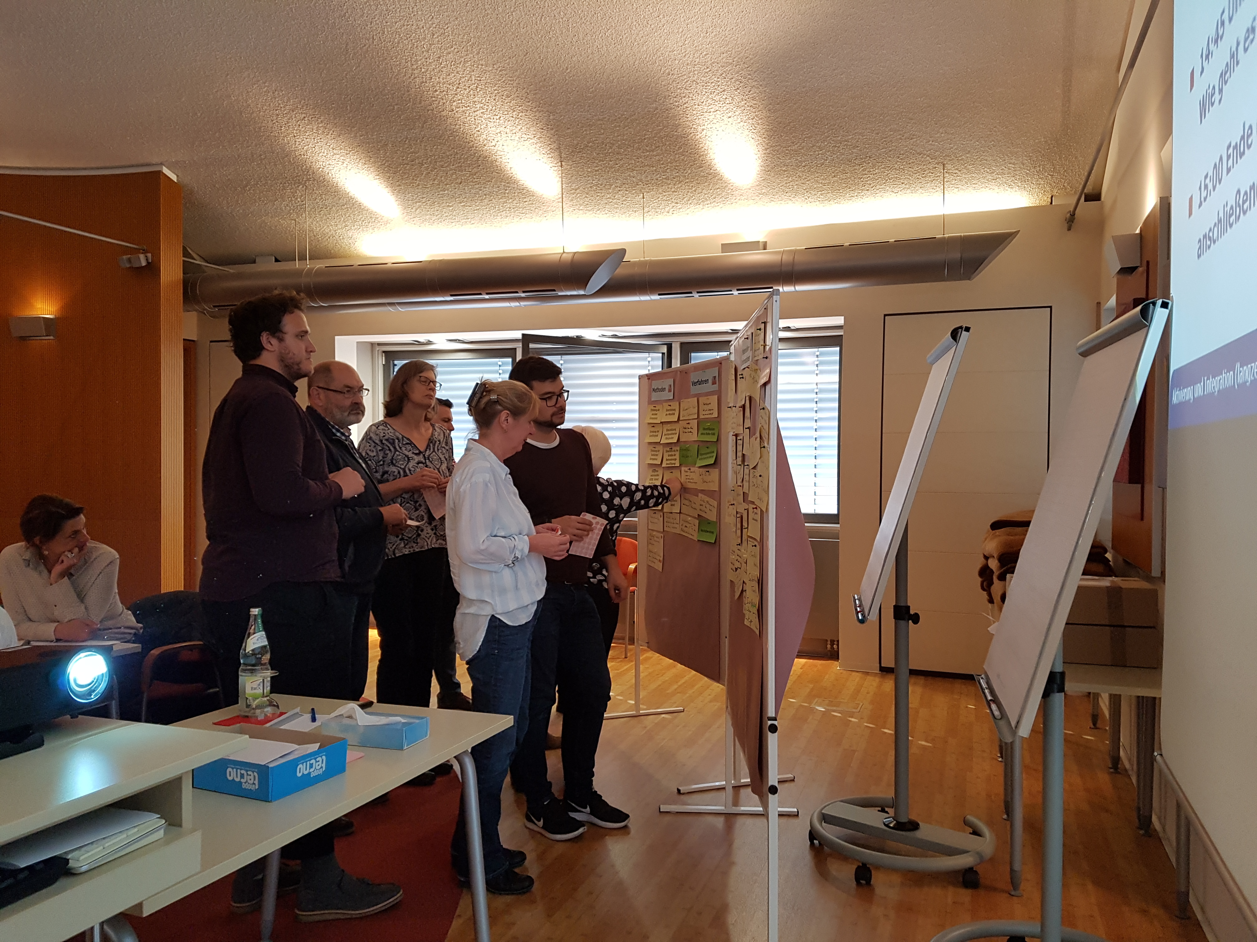 Am 17. Oktober 2018 trafen sich Projektmitarbeiter mit Vertretern der Leistungsträger unter den Kooperationspartner zu einem ersten Experten-Workshop im BFW Würzburg. eine umfangreiche Materialsammlung, die die Projektmitarbeiter unter der Federführung von blista Marburg und BFW Halle zusammengetragen hatten, wurde den Leistungsträgern präsentiert und anschließend gemeinsam diskutiert, gewichtet und nach ihrer Priorität geordnet. Dabei ergaben sich die "Top Ten" der Unterstützungsbedarfe der Leistungsträger: